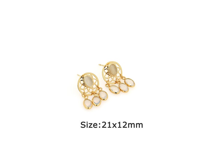 1 Pair,MicroPave Zircon Earrings,18K Gold Filled Dainty Earrings, Moon Earrings, Crescent Earrings, Gift for Her, Moon Charm,29.5x28x1.5mm