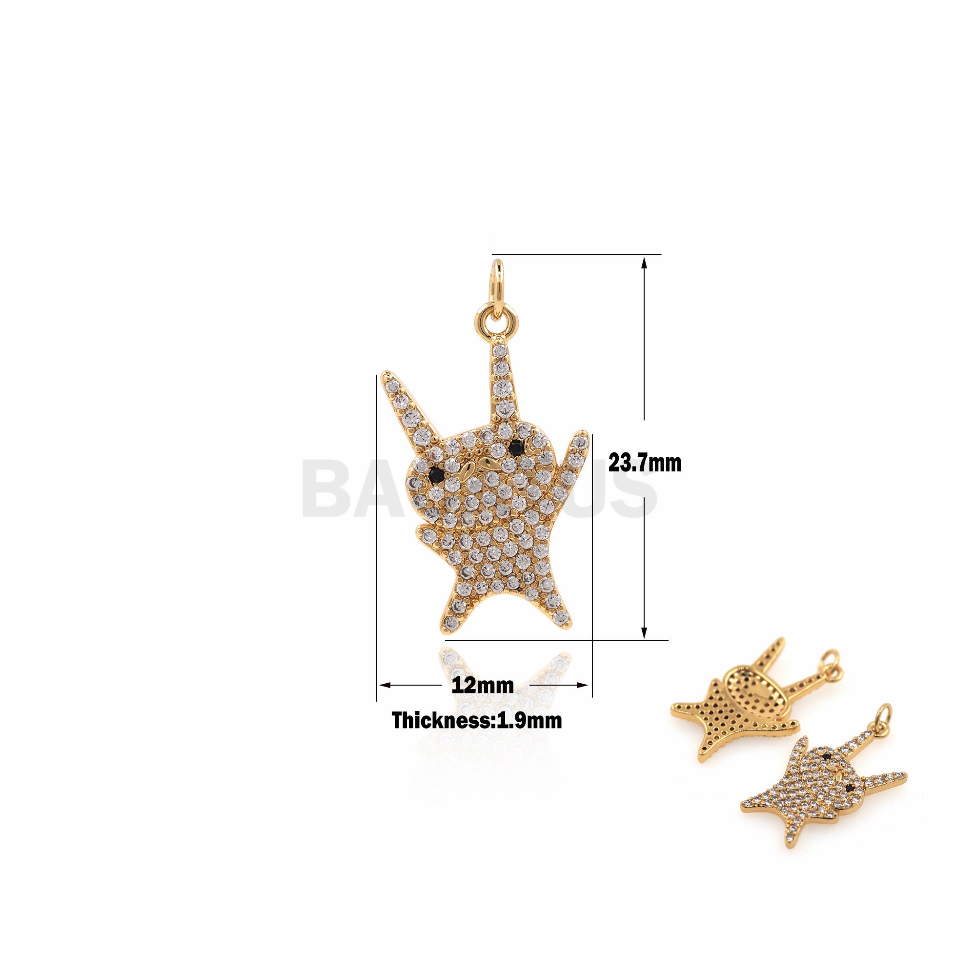 1PCS Bunny Pendant Cute Animal Jewelry DIY Jewelry Making Bunny Charm Cubic Zirconia 18K Gold Filled CZ Charm 23.7x12x1.9mm