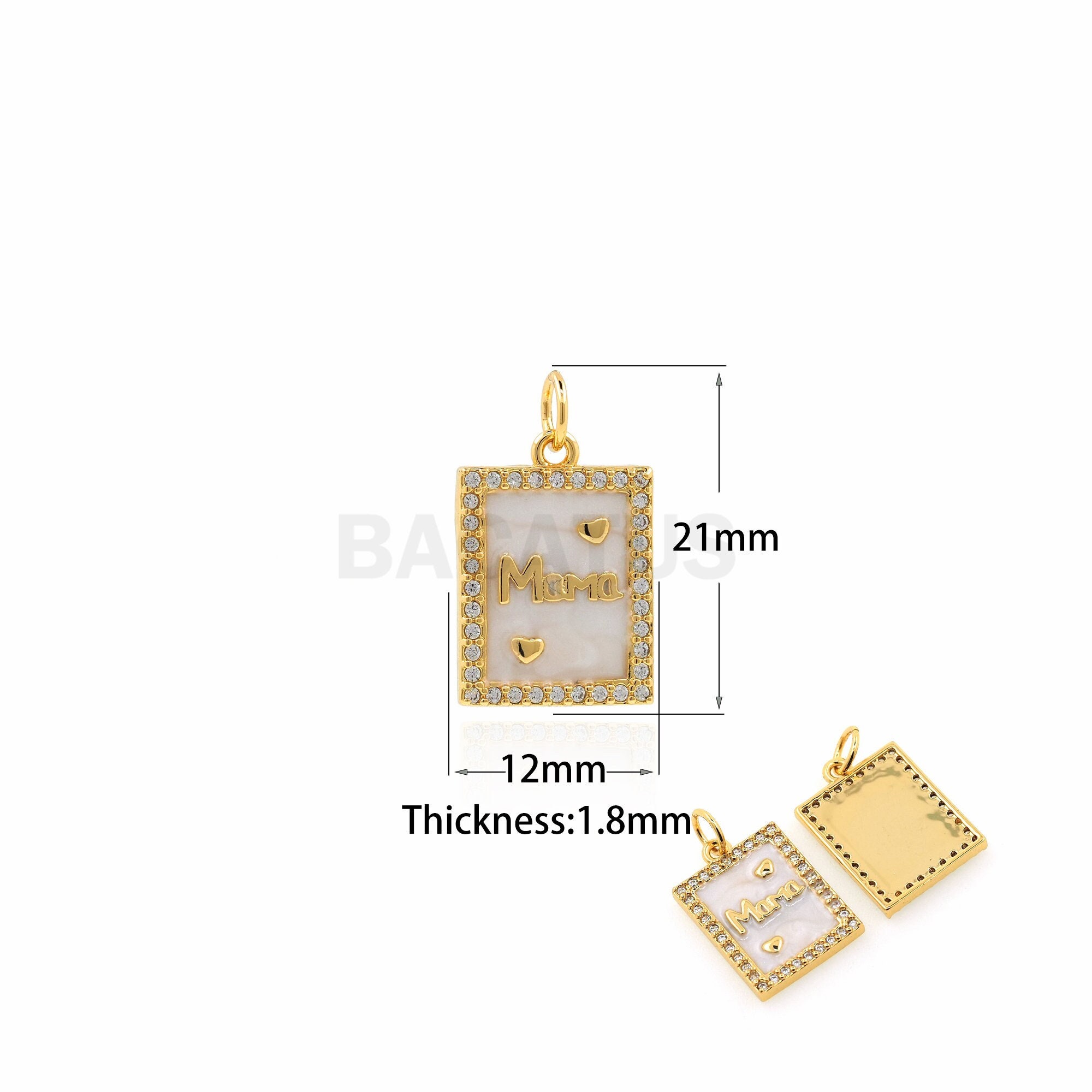 18K Gold Filled Medal Pendant, Rectangular Pendant, Micropavé CZ Letter Text Pendant, DIY Jewelry Accessories, 21x12x1.8mm