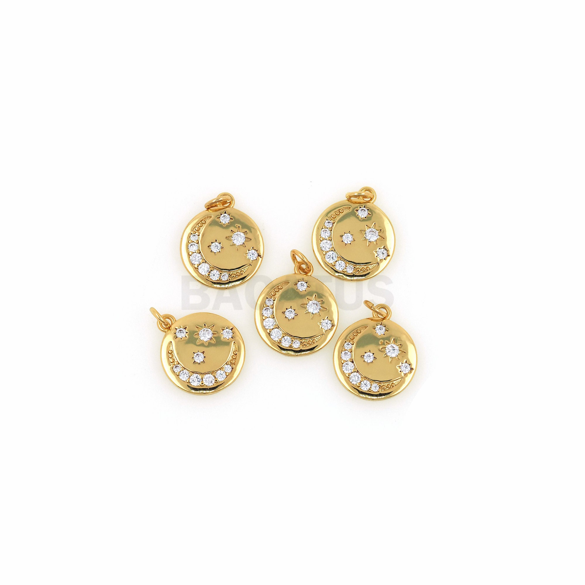 ✦1Pcs 1Pcs Moon Seal Pendant, Golden Moon Coin Necklace Round Necklace Jewelry, Night Sky Pendant Cubic Zirconia Moon Charm 17x12x1.8mm✦