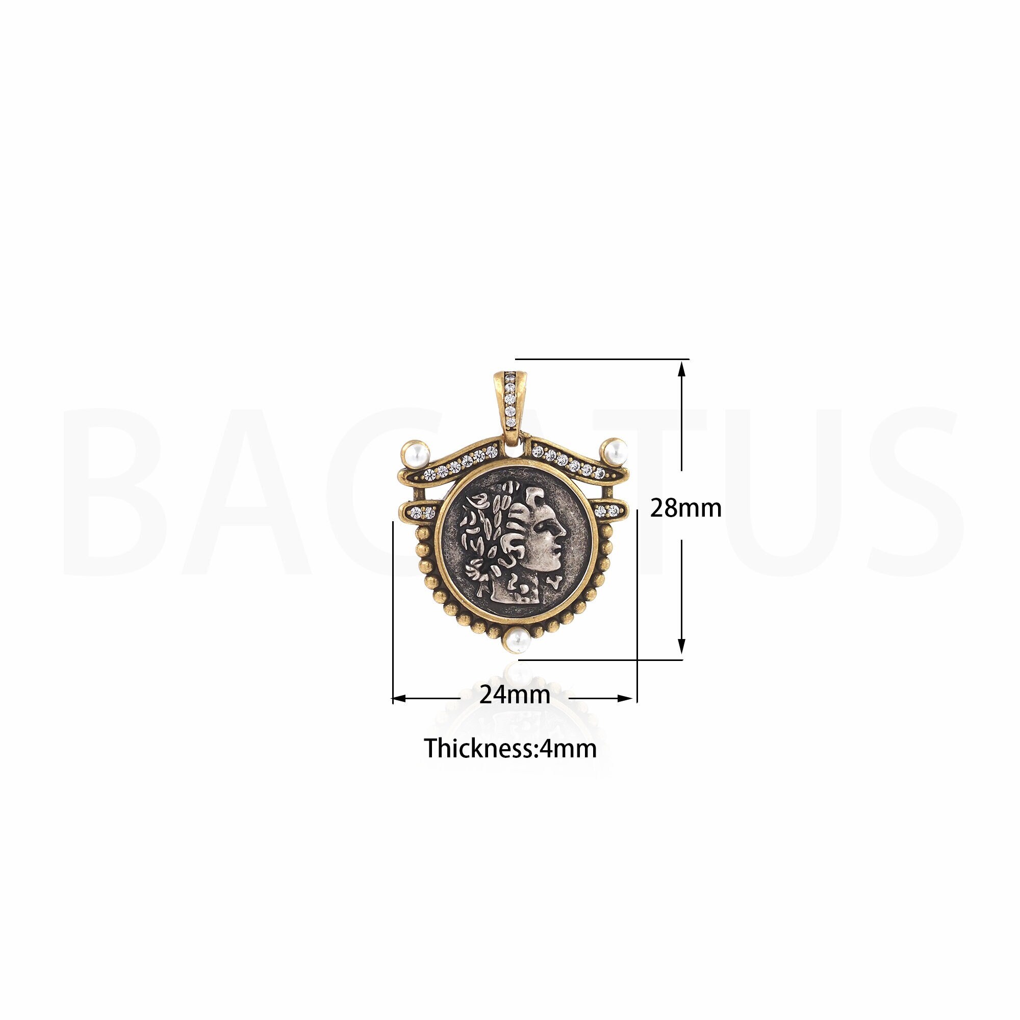 18K Gold Filled Engraved Necklace,Vintage Figure Pendant,MicroPavé CZ Vintage Jewelry,Portrait Charm, DIY Jewelry Supplies,28x24x4mm