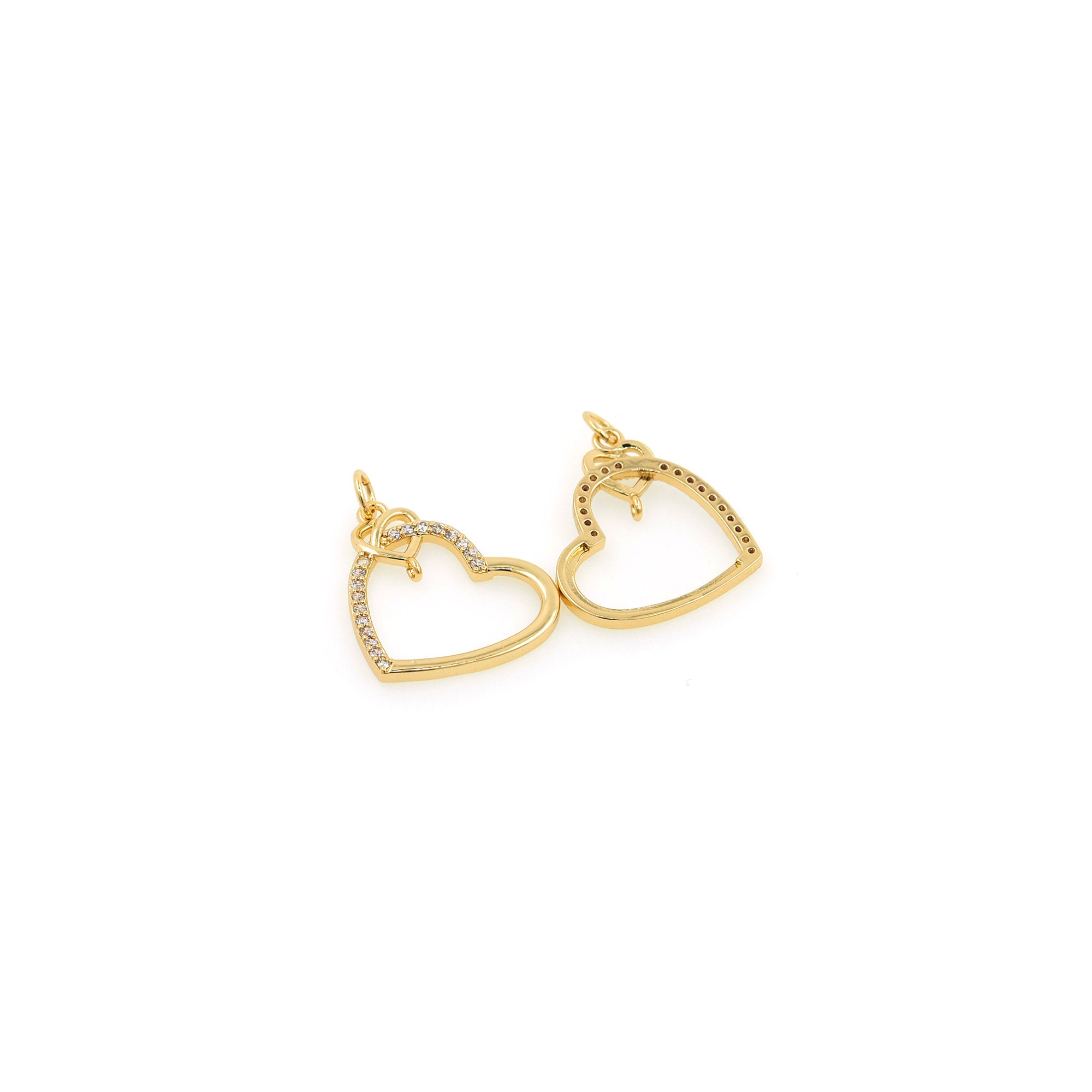 18K Gold Filled Heart pendant,Gold Dainty Heart Charms,Heart Charm Bracelet Necklace for DIY Jewelry Making Supply