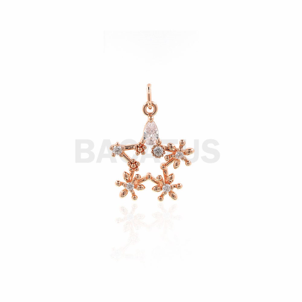 Shiny Flower On Star Charm,zircon flower Star Shape charm,Gold plated Brass Five Point Star 17x22x3.5mm