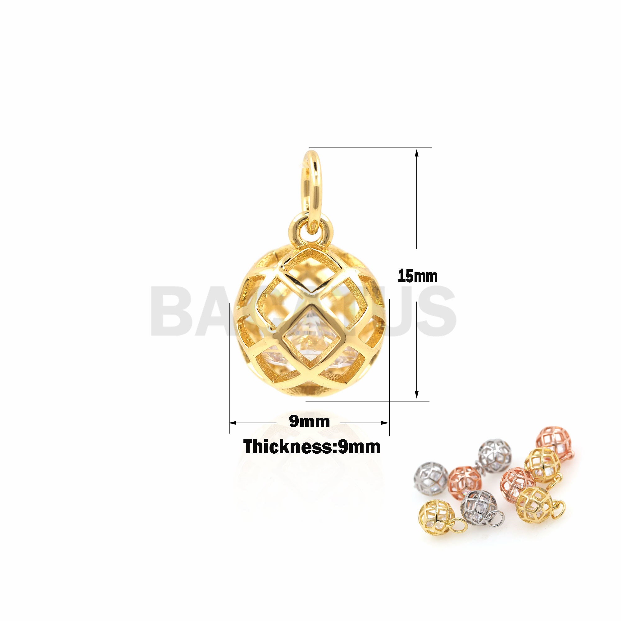 1PCS Cubic Zirconia Hollow Ball Pendant, Round Necklace, Metal Copper Wire Ball Beads, Suitable For Jewelry Making 9×9×15mm